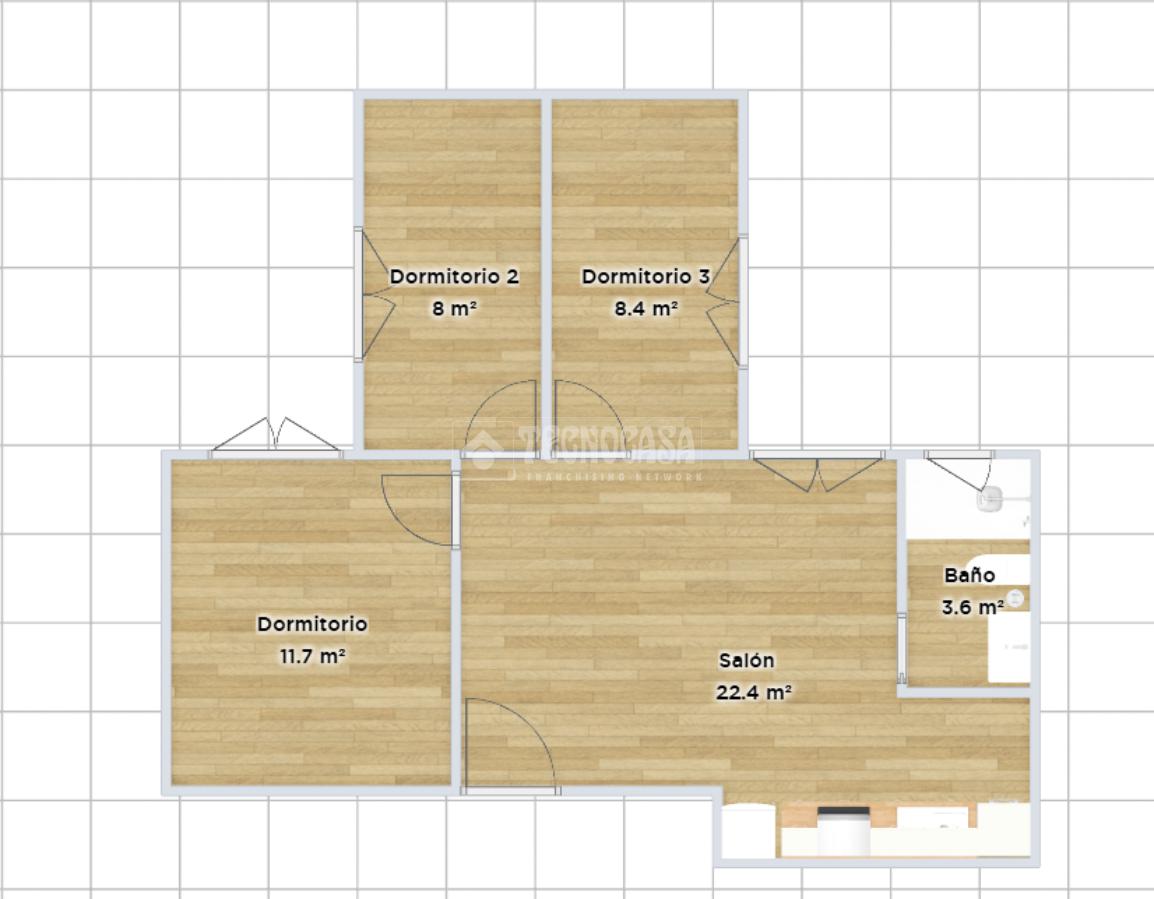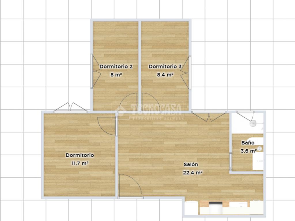 Vivienda de 54 m² construidos (49 m² útiles), 4ª planta sin ascensor, muy bien distribuida y con ventana en todas las estancias (incluido el baño).